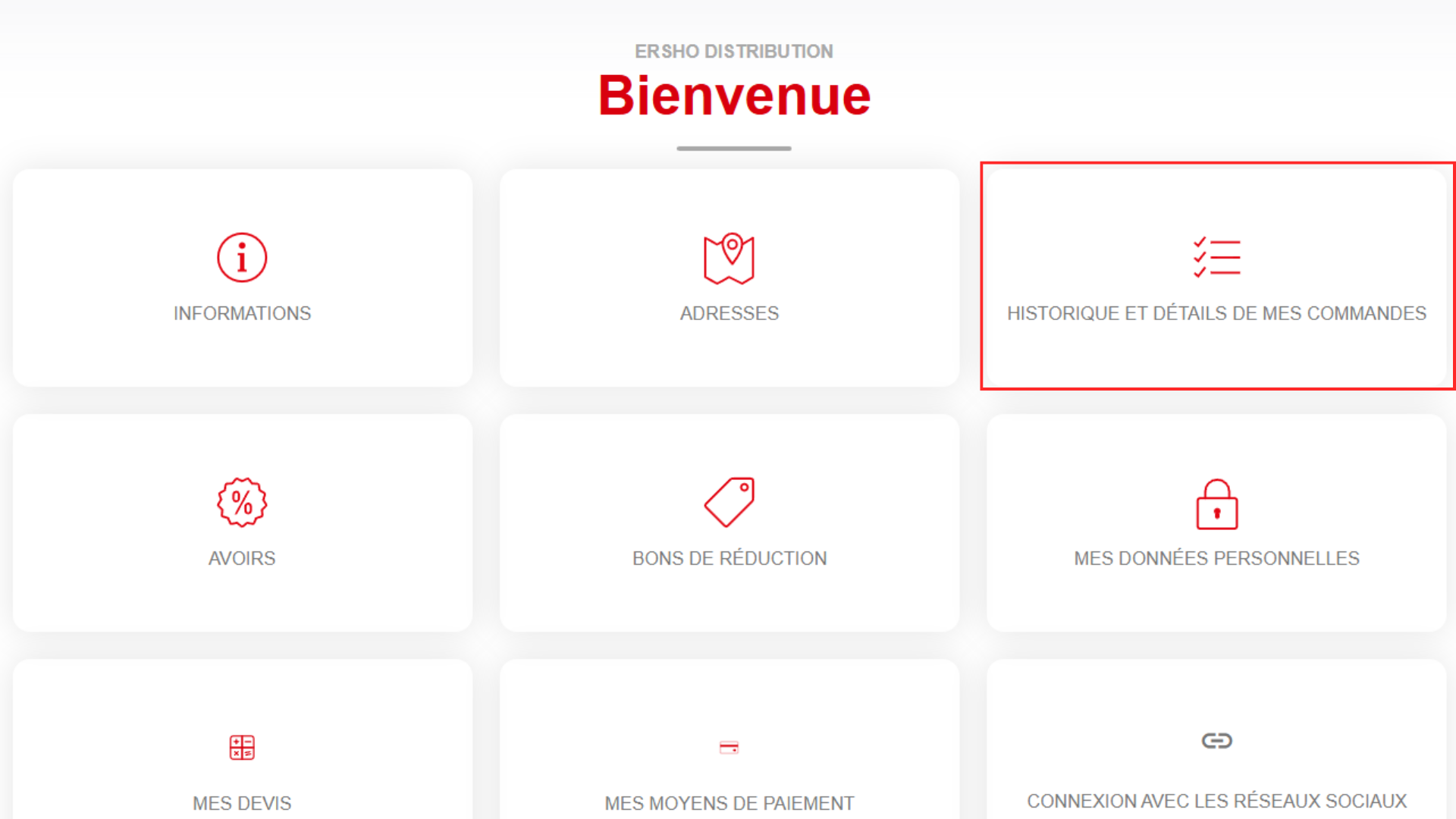 Dans votre espace client, cliquez sur « Historique et détails de mes commandes ».